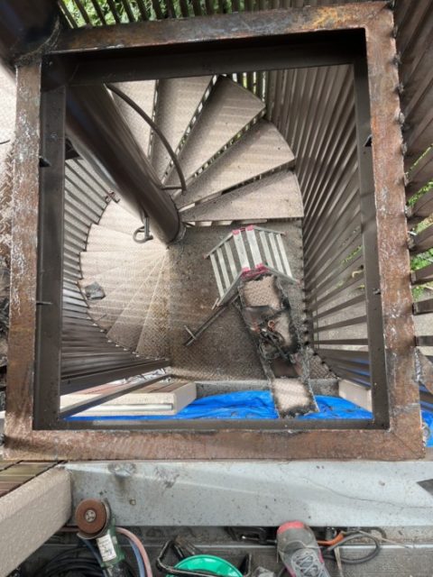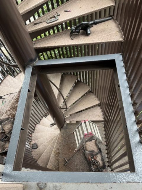螺旋階段の踏み板の撤去および踏み板新設工事を行ないました。