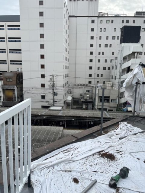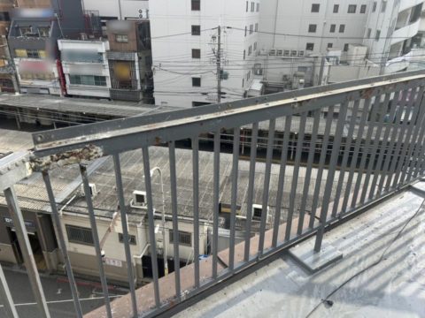 大阪市淀川区 バルコニー手摺り 取替え工事・看板下地取付け工事